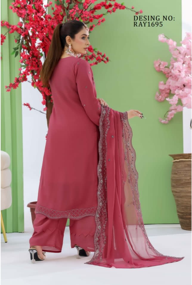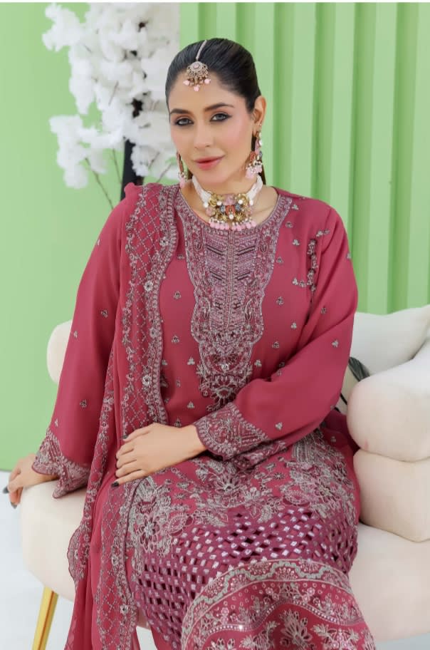 Premium chiffon adorned with intricate embroidery creates a look that feels graceful, luxurious, and effortlessly stylish.