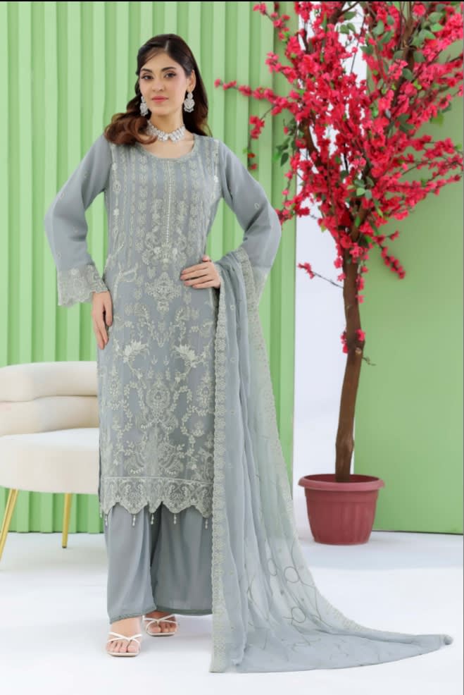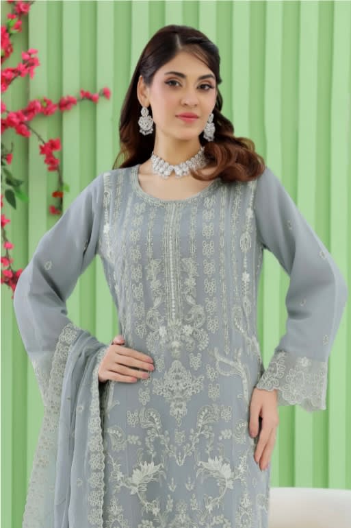 Premium chiffon adorned with intricate embroidery creates a look that feels graceful, luxurious, and effortlessly stylish.