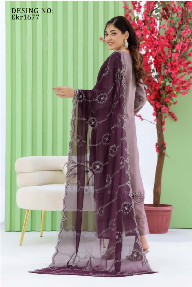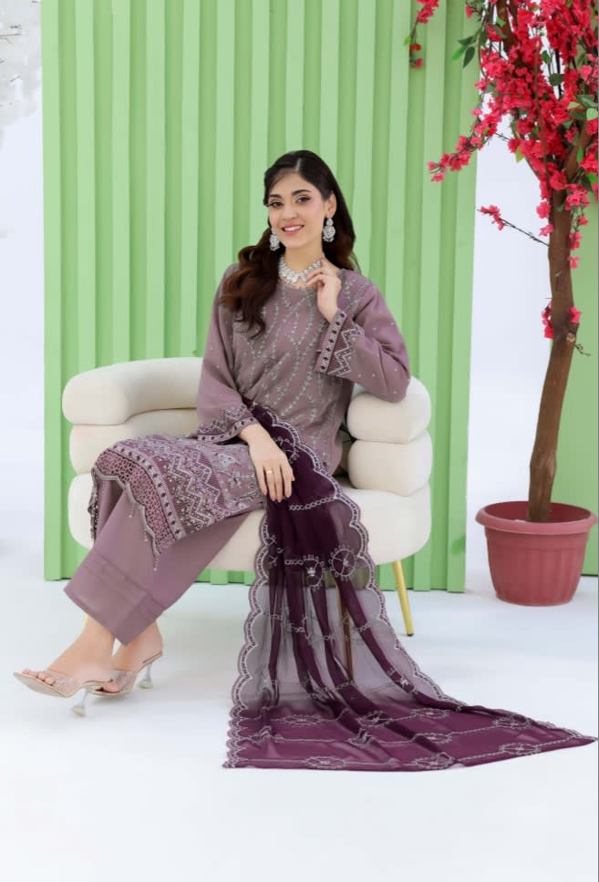 Premium chiffon adorned with intricate embroidery creates a look that feels graceful, luxurious, and effortlessly stylish.