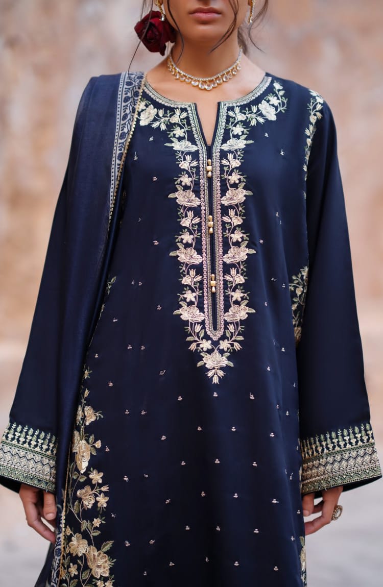 Silk Festive 3-Piece Suit – Timeless Elegance for CelebrationsElevate your festive wardrobe with this luxurious Silk Festive 3-Piece Suit, thoughtfully designed for women who appreciate grace, comfort, and sophistication. Crafted from premium-quality silk fabric, this ensemble offers a rich texture and a graceful fall that instantly enhances your look for special occasions.The set includes a beautifully tailored silk shirt, paired with a matching silk trouser that ensures a polished and comfortable fit. Completing the look is a coordinated dupatta, adding an extra layer of elegance and festive charm. The natural sheen of silk reflects light beautifully, making this outfit perfect for day and evening events alike.Ideal for festive gatherings, weddings, family celebrations, Eid, and formal occasions in Dubai, this 3-piece suit blends traditional aesthetics with modern refinement. The breathable yet luxurious fabric makes it suitable for the UAE climate while maintaining a regal appearance throughout the day.Whether styled with statement jewelry for a grand look or kept minimal for understated elegance, this silk festive suit is a versatile addition to your ethnic collection. Designed to make you stand out effortlessly, it’s a perfect choice for women who seek timeless fashion with a touch of luxury.Available in Dubai – a must-have festive essential for your wardrobe.