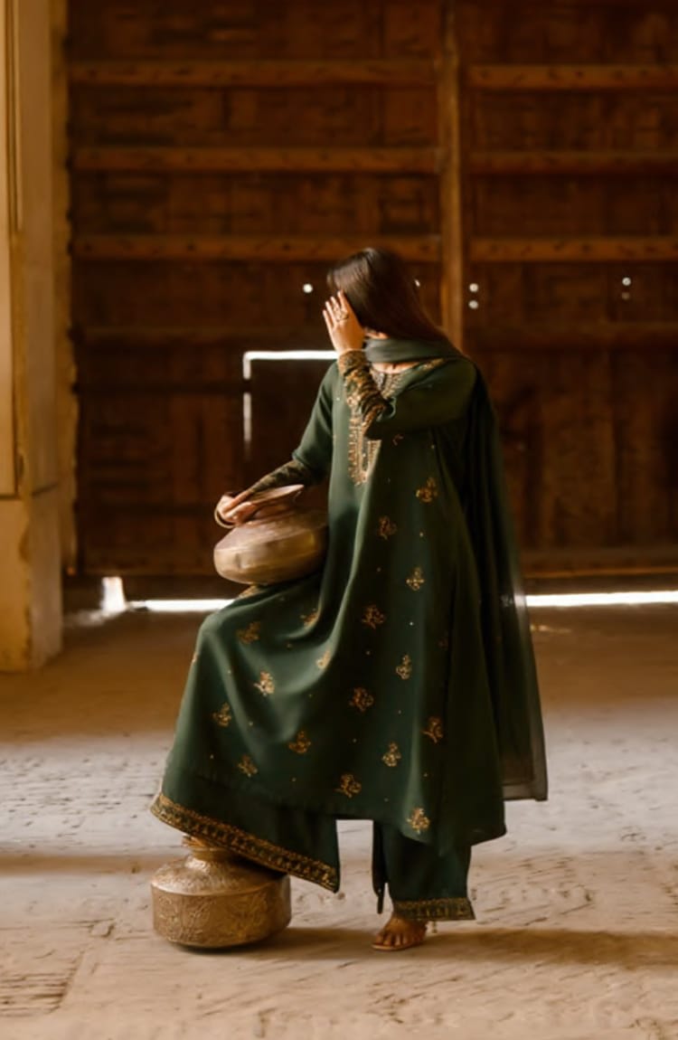Silk Festive 3-Piece Suit – Timeless Elegance for CelebrationsElevate your festive wardrobe with this luxurious Silk Festive 3-Piece Suit, thoughtfully designed for women who appreciate grace, comfort, and sophistication. Crafted from premium-quality silk fabric, this ensemble offers a rich texture and a graceful fall that instantly enhances your look for special occasions.The set includes a beautifully tailored silk shirt, paired with a matching silk trouser that ensures a polished and comfortable fit. Completing the look is a coordinated dupatta, adding an extra layer of elegance and festive charm. The natural sheen of silk reflects light beautifully, making this outfit perfect for day and evening events alike.Ideal for festive gatherings, weddings, family celebrations, Eid, and formal occasions in Dubai, this 3-piece suit blends traditional aesthetics with modern refinement. The breathable yet luxurious fabric makes it suitable for the UAE climate while maintaining a regal appearance throughout the day.Whether styled with statement jewelry for a grand look or kept minimal for understated elegance, this silk festive suit is a versatile addition to your ethnic collection. Designed to make you stand out effortlessly, it’s a perfect choice for women who seek timeless fashion with a touch of luxury.Available in Dubai – a must-have festive essential for your wardrobe.