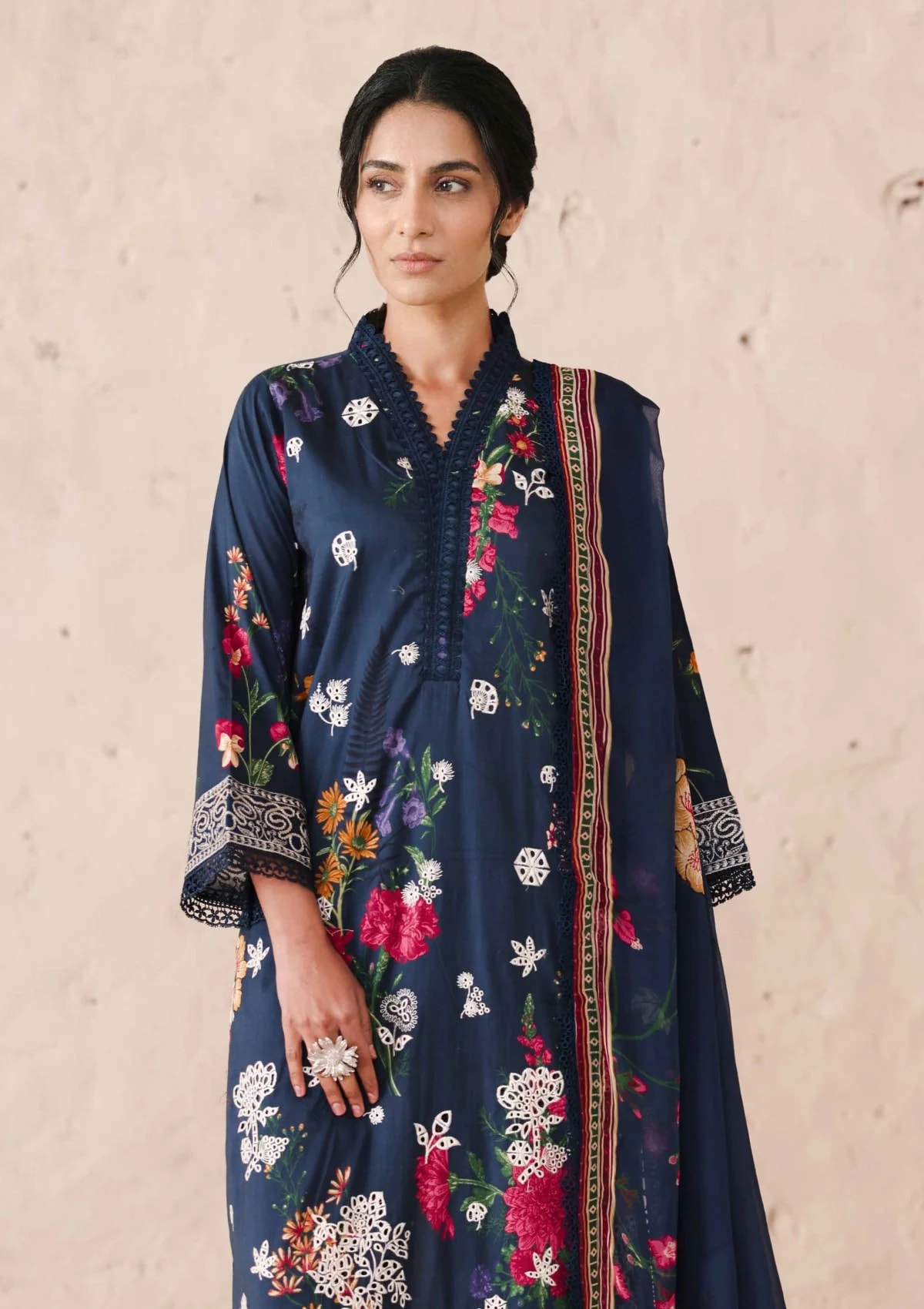 Embroidered + Printed Lawn with Chiffon DupattaThis premium 3-piece unstitched lawn suit features a richly embroidered front panel paired with an all-over printed lawn body and a delicate printed chiffon dupatta that drapes with grace.Crafted for women who refuse to compromise on quality or elegance, Huriya is your go-to for festive gatherings, casual outings, and everything in between.Step into effortless elegance with a luxuriously crafted 3-piece lawn suit that blends intricate embroidery with vibrant printed fabric. Designed for the modern South Asian woman who values grace, comfort, and style in every stitch.CARE INSTRUCTIONS Iron at medium heat only Shrink fabric before stitching Do not dry in direct sunlight Wash dark and light colours separately No bleach or stain remover